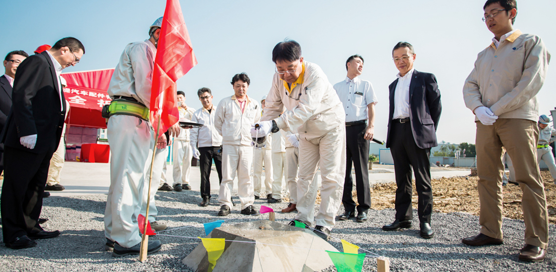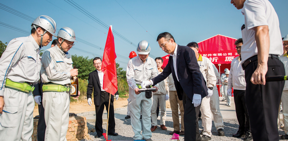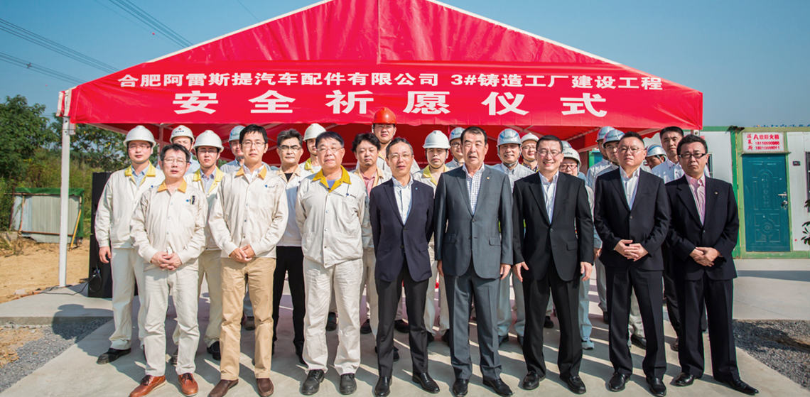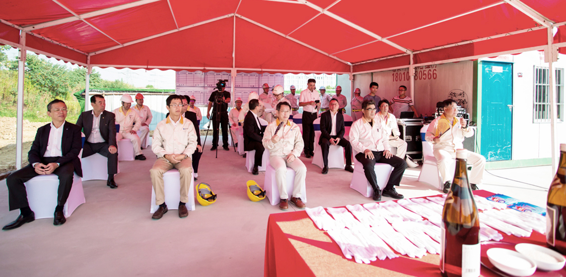 2017年7月25日,高橋社長、高橋管理本部長、荒井品質本部長、GAC間淵總經(jīng)理,AHC松下總經(jīng)理、近藤副總經(jīng)理及AHC高層管理者與施工方相關人員共同出席3#鑄造工廠奠基儀式。