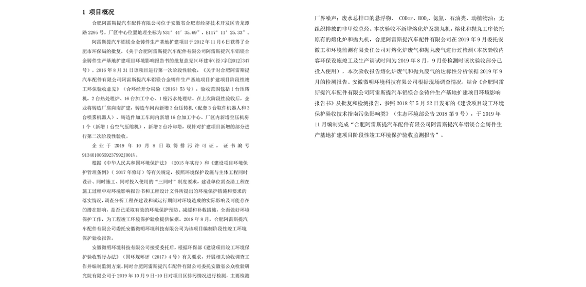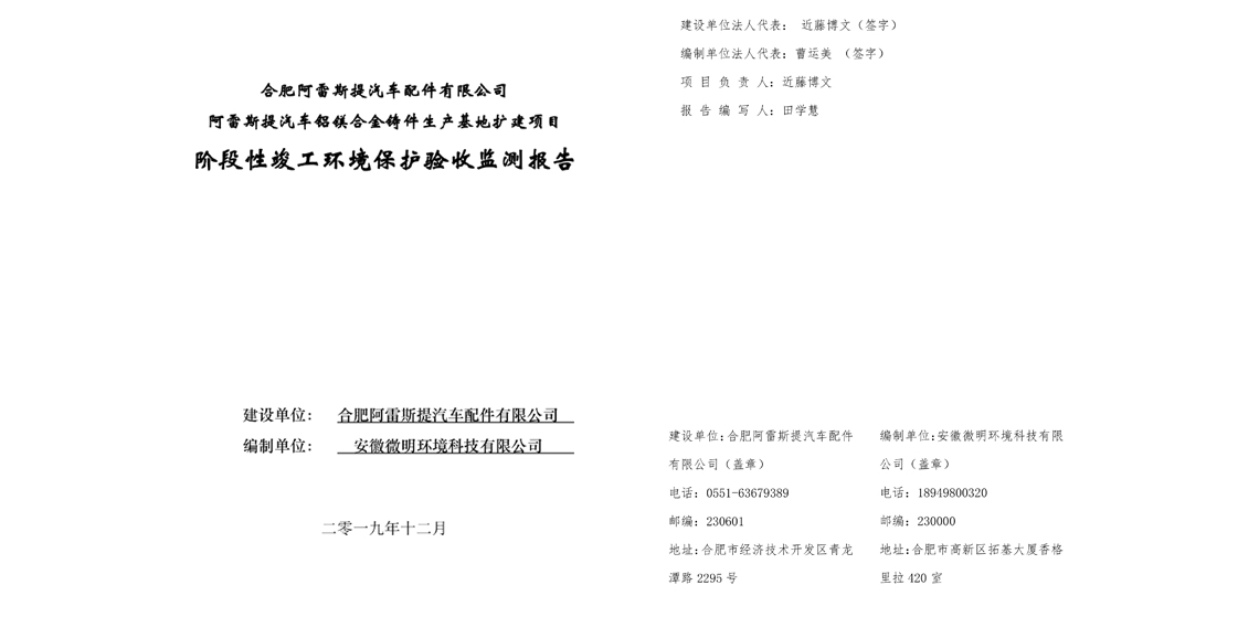 附件:阿雷斯提汽車鋁鎂合金鑄件生產(chǎn)基地?cái)U(kuò)建項(xiàng)目階段性竣工環(huán)境保護(hù)驗(yàn)收監(jiān)測(cè)報(bào)告