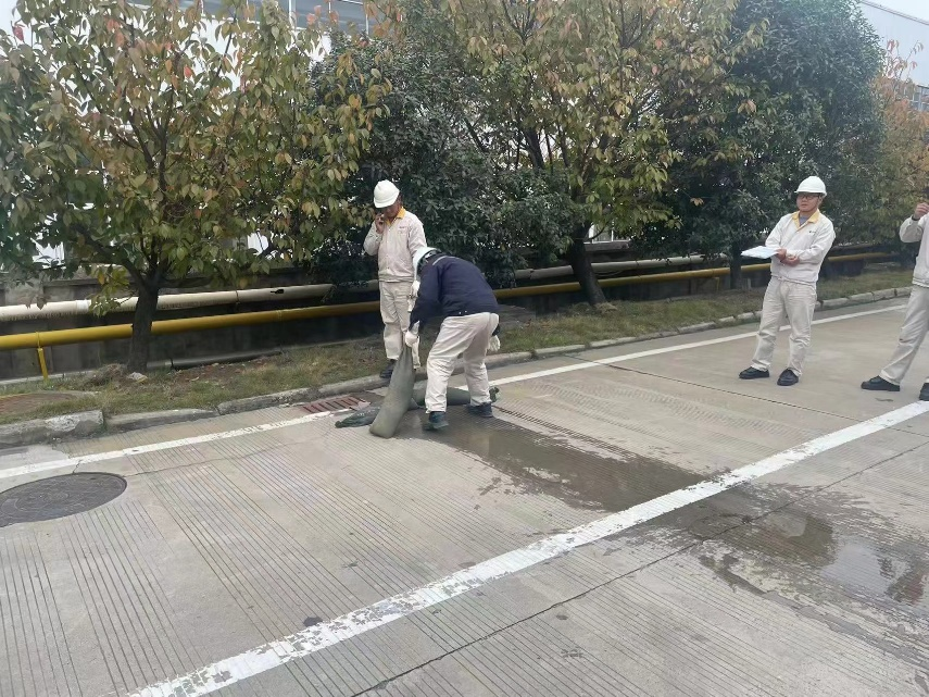 演練過程中,各科室成員表現(xiàn)出了高度的協(xié)作精神和專業(yè)素養(yǎng),他們按照預(yù)定的應(yīng)急流程,有序地進行著各項操作。從泄漏源頭的控制,污染地面的清理,到雨水管道的封鎖和清洗,每一個環(huán)節(jié)按照規(guī)定動作,認(rèn)真完成各自的任務(wù)。